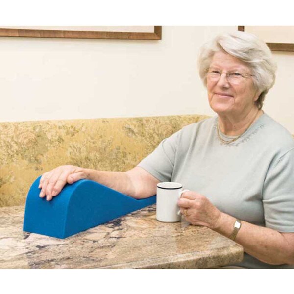 These contoured, dense Foam Elevating Arm Supports aid in positioning the injured or weak area comfortably and safely against the body, or elevate the swollen arm/hand ideally above the heart to prevent swelling. Made of solid, open-cell foam. Latex-free.
