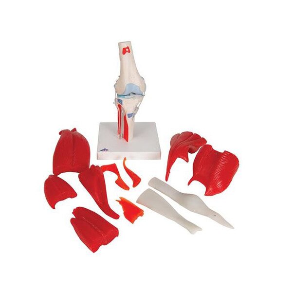The Knee Joint Model by 3B Scientific® with removable joints is part of a high quality series of models. It has been manufactured to precise anatomical correctness with realistic colors of the joint, bone and muscles. Only extremely durable, nonhazardous material of highest standards has been used throughout the production process.