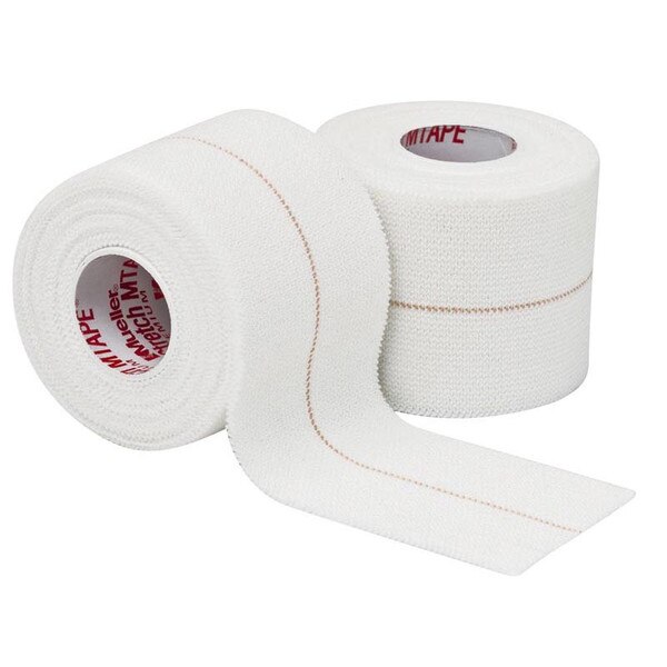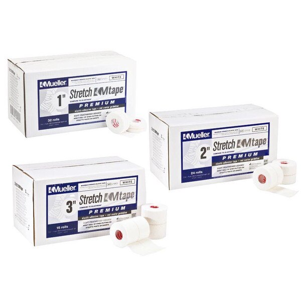 Mueller® Stretch MTape Premium is maximum-strength elastic adhesive tape. Ideal for areas and techniques normally difficult to tape. The superior adhesive and tensile strength. Red center guideline helps for consistent taping. Soft featured edges won't roll up when putting on athletic pants or shorts.