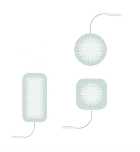 The Starburst stimulating electrode design incorporates a patented multi-layer gradient pattern providing the most advanced current distribution system available. This unique gradient pattern is made of pure silver, known as a superior conductive material and optimal for stimulating electrodes. Available in 2" square, 2" round and 2" x 3.5" rectangle. 10 packs per case.