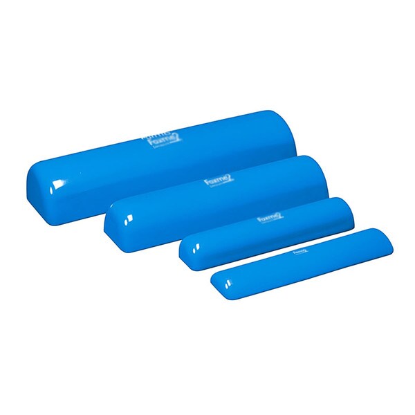 Versatile Raised Rolls offer the positioning options of conventional rolls with the stability of a wedge. Uniquely shaped with a flat bottom, tall sides and curved top to provide a stable base for bolster sitting, side leaning or prone positioning. Use smaller rolls for knee or ankle flexion and cervical elongation. A Velcro strip on the bottom of each roll holds it in place for active or static therapies. Latex free. Color: Blue.